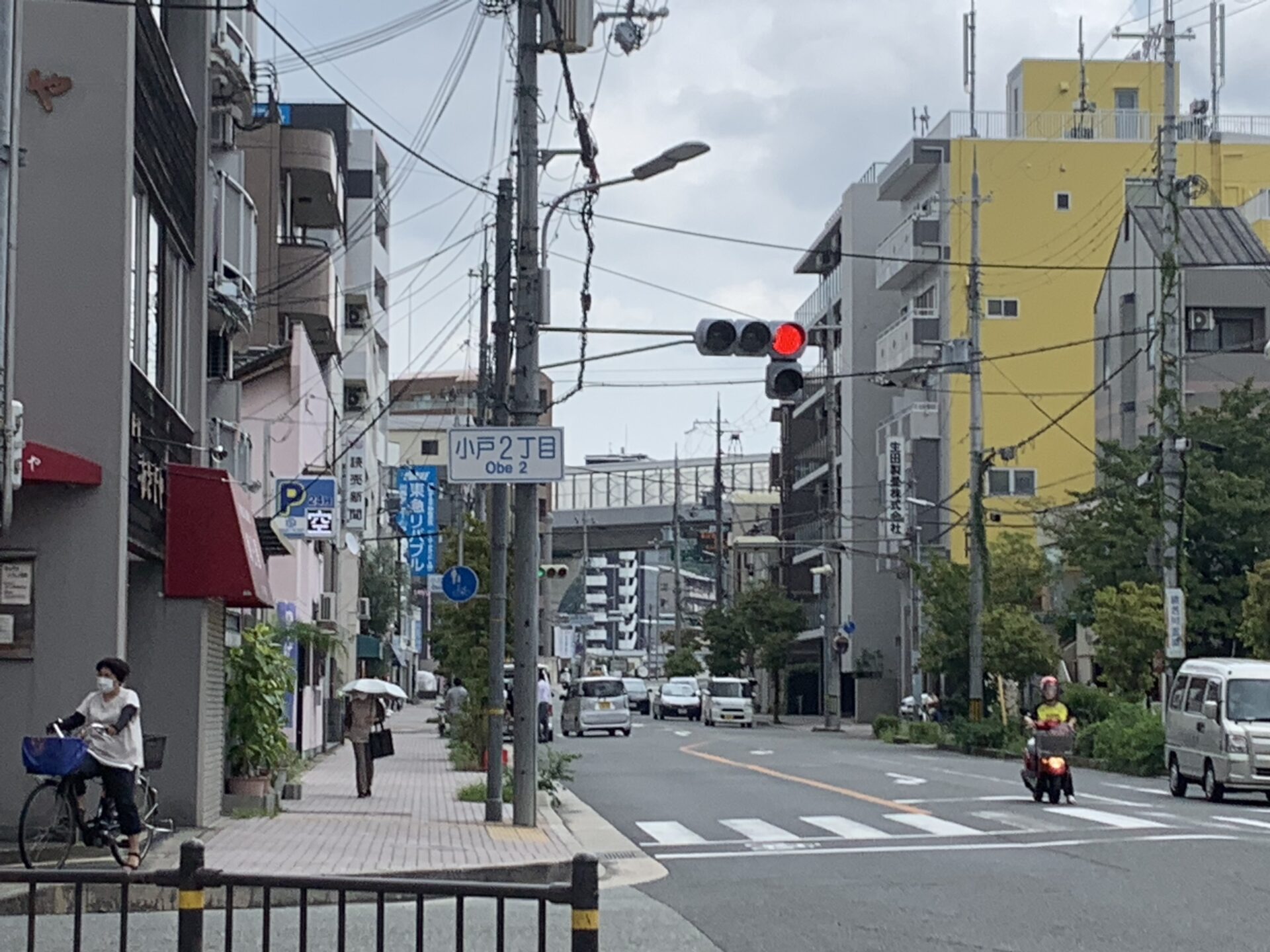 阪急電車の高架下をみつなかホール方面に向かって歩いていくと「小戸二丁目」の交差点に出ます。