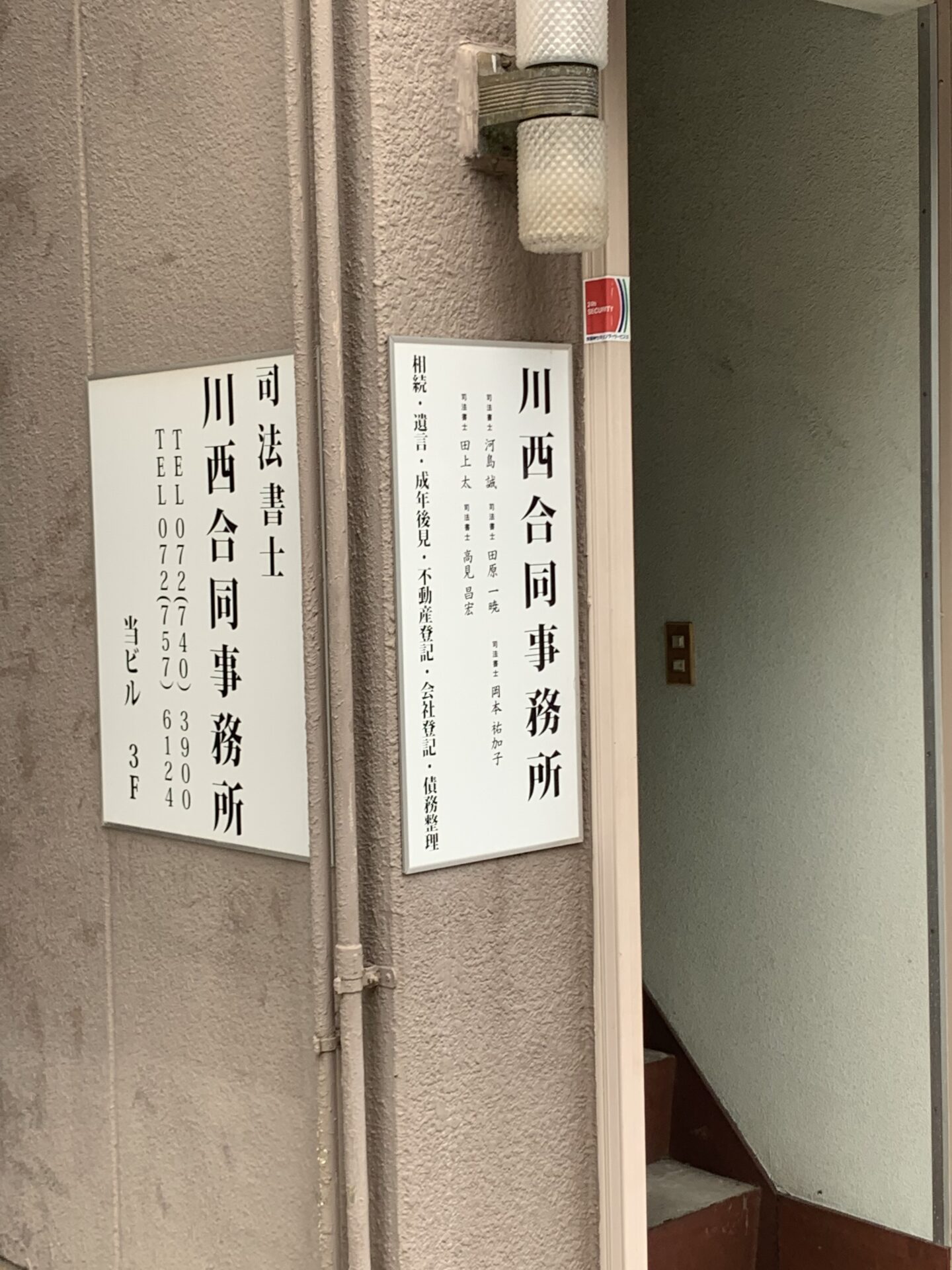 池田方面に少し歩くと左手に当事務所の表札があります。